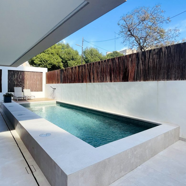 This exquisite penthouse in Palma, Mallorca offers a rare blend of privacy, luxury, and outdoor living. The highlight is the private rooftop terrace featuring a plunge pool, lounge area, and optional mist vaporizer pergola—perfect for cooling off on warm Mallorca afternoons.