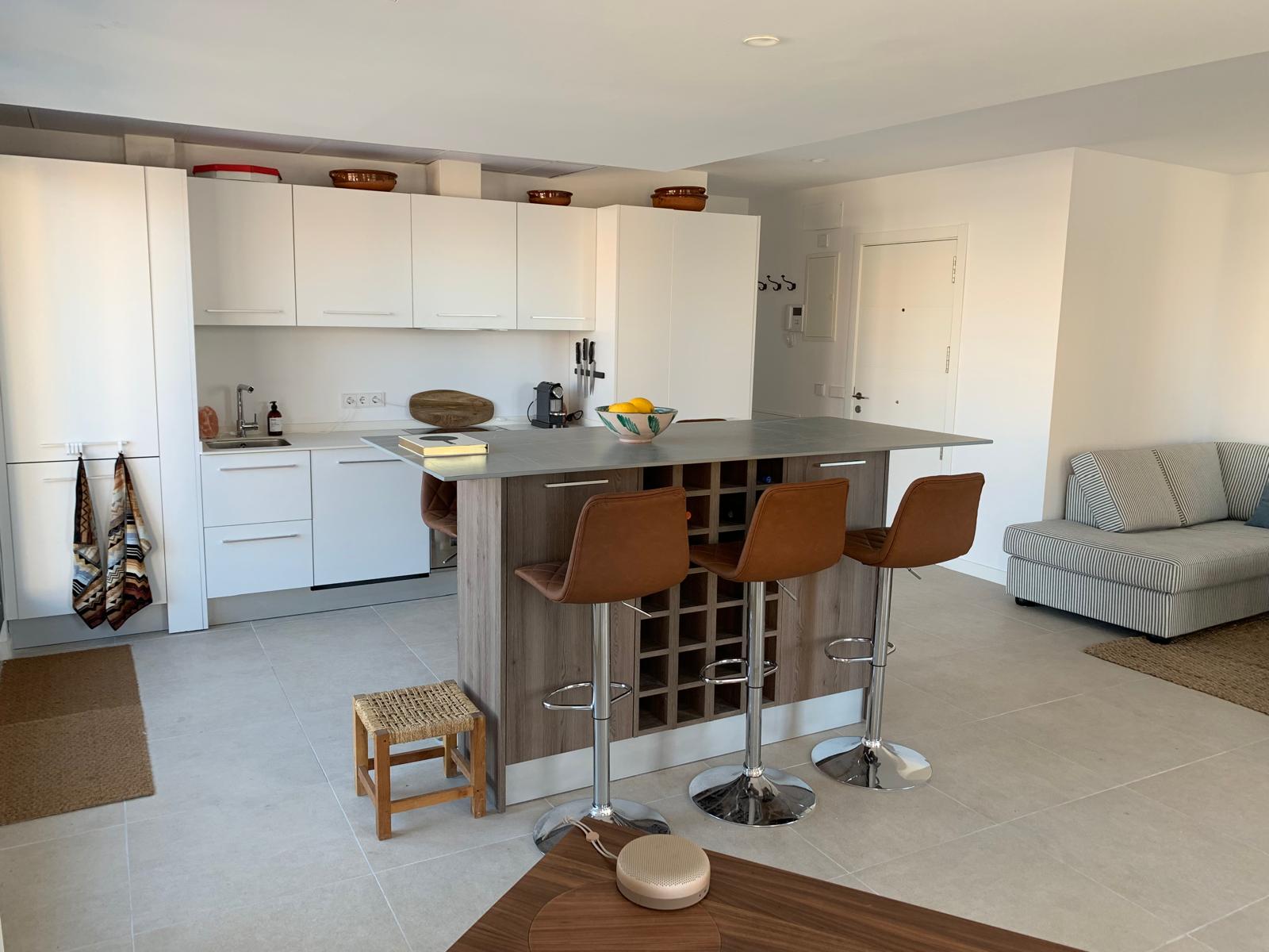 Located in the sought-after Portixol–Es Molinar neighborhood of Palma, this modern 3-bedroom penthouse spans 112 m² across two floors and offers a spectacular 72 m² south-facing terrace with stunning sea and mountain views. Built in 2018 in a minimalist style, the apartment features large windows and glass doors that bring in natural light and connect seamlessly to the outdoors.